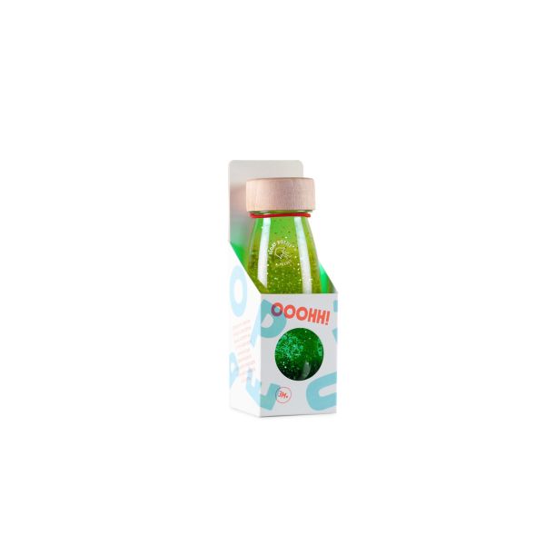 Aquesta ampolla verda sensorial és de la família “Float Bottles” que estimulen la calma, l’observació, l’atenció i la imaginació.