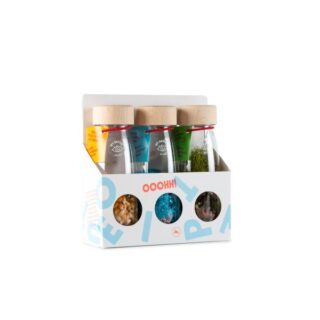 Pack format per 3 ampolles sensorials que estimulen el sentit auditiu, la calma, l’atenció i la imaginació.