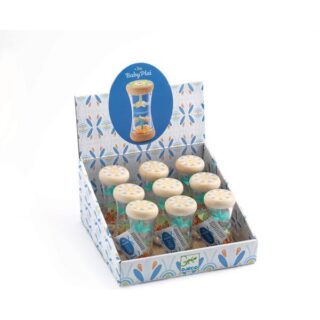 El bebè dóna la volta al pal i l’agita per a veure com cauen les boletes i escoltar el suau so de la pluja.