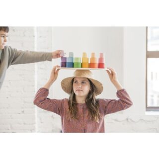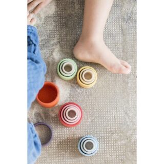 Pot complementar el joc heurístic amb l’omplir i el buidar, els traspassos i el carregar, l’amagar i el descobrir,…. Aquests bols de diferents mides també permeten crear mons de torres, colors, construccions, amagar tresors com a capsetes o fins i tot fer rodar un dins de l’altre.