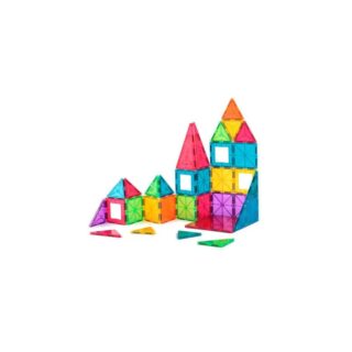 Joc de construcció magnètic Imanix amb 32 peces geomètriques translúcides de colors i diferents grandàries per a la construcció en 2D i 3D.