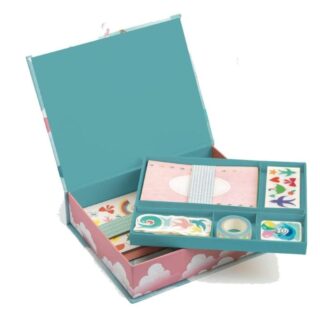 Bonic set de papereria empaquetat en una bella caixa amb un munt de cosetes boniques: llibretes, adhesius, calcomanies…