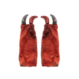 Aquest conjunt negre i vermell té el cap de dinosaure amb la mandíbula inferior desmuntable, espines metàl·liques del cap a la cua i un parell d’urpes.