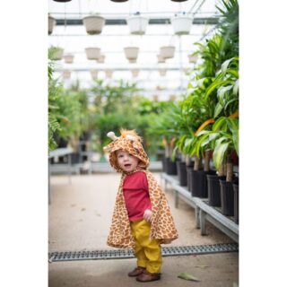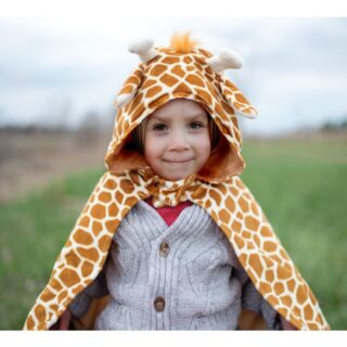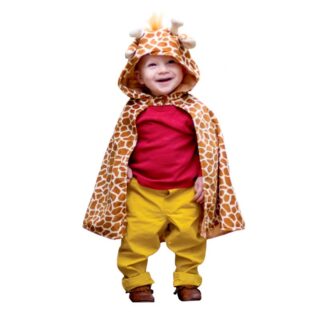 Amb un estampat clàssic de girafa, banyes a la caputxa i una cabellera peluda a l’esquena, aquesta capa traurà el costat salvatge del teu nen/a.