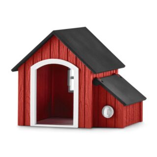 El pastor australià és un gos molt esportista i té molta energia. Li encanta estar a l’aire lliure i cuidar de les ovelles. La nova caseta de gos ho protegeix del vent i la humitat. Per a aïllar la fred, la caseta també està aïllada amb una base gruixuda que fa calor.