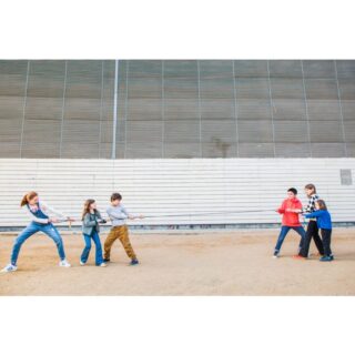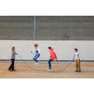 Les cordes llargues són perfectes per a saltar en grup. Dos mouen la corda, i la resta ha de coordinar-se i portar el mateix ritme de salt per a no caure. A més, si acompanyem els salts amb alguna cançó, serà molt més divertit. A part d’aquest joc podem jugar a l’estira-i-arronsa o a qualsevol joc que se us acudeixi.