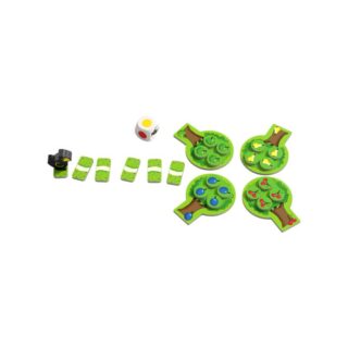 El frutal Mini és un joc de taula per a nens en el qual els jugadors intentaran agafar les fruites abans que el descarat corb arribi als arbres fruiters.