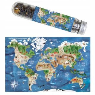 Puzle Londji de 150 piezas con una preciosa ilustración de mapamundi lleno de detalles.