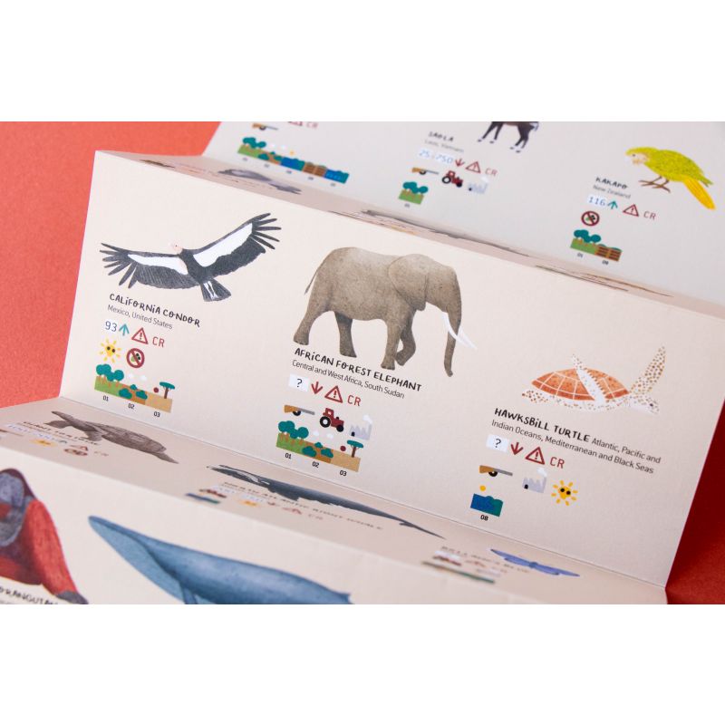 El puzle incluye una pequeña guía basada en la Lista Roja de Especies Amenazadas de la Unión Internacional para la Conservación de la Naturaleza (UICN) que proporciona información sobre el hábitat, la población y las amenazas para estas especies.