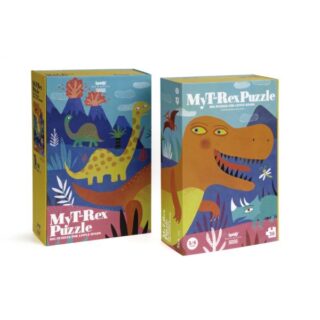 «My T-Rex» es un puzle de 36 piezas grandes de cartón resistente con una Una ilustración original de dinosaurios.