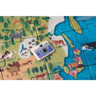 El puzle incluye un juego de observación. Una vez montado, los jóvenes aventureros pueden elegir una expedición y asumir el reto de convertirse en zoólogos, buscando y encontrando especias animales para fotografiarlas.