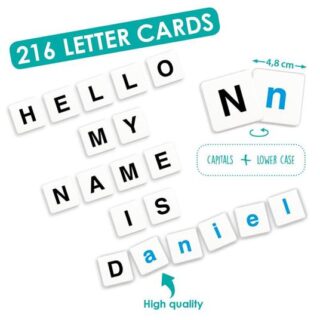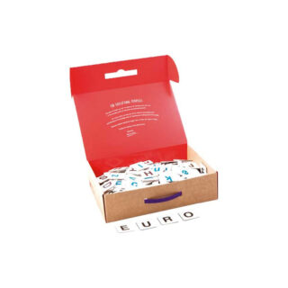 Maletín con 216 letras, por un lado en mayúsculas y por el otro en minúsculas, favoreciendo la iniciación a la lectura y pre-lectura.