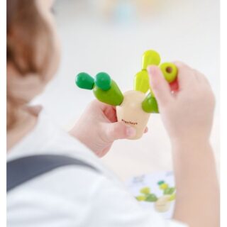 Los juguetes Plantoys están fabricados de madera de corcho reciclado procedente de árboles que ya no producen látex. La madera está excluida de todo producto químico y las pinturas utilizadas son no tóxicas. El embalaje es de cartón reciclado.