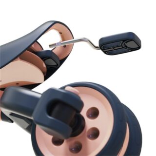 El manillar y el sillín son fácilmente ajustables en altura para acompañar el crecimiento de los pequeños. Además, con solo tocar un botón, las ruedas traseras giran dentro de la horquilla trasera, creando una bicicleta de equilibrio menos estable que ayuda a entrenar el equilibrio sin pedales de forma progresiva.