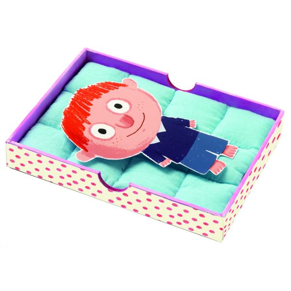 Ponemos encima de la camita la plantilla del niño o la niña con los ojos abiertos. El adulto es quien hace el juego de cartas.