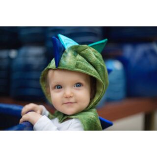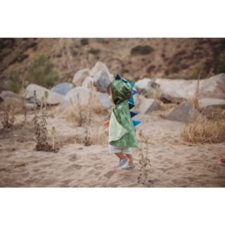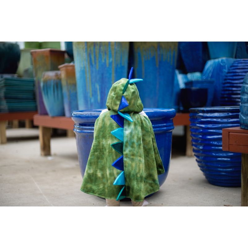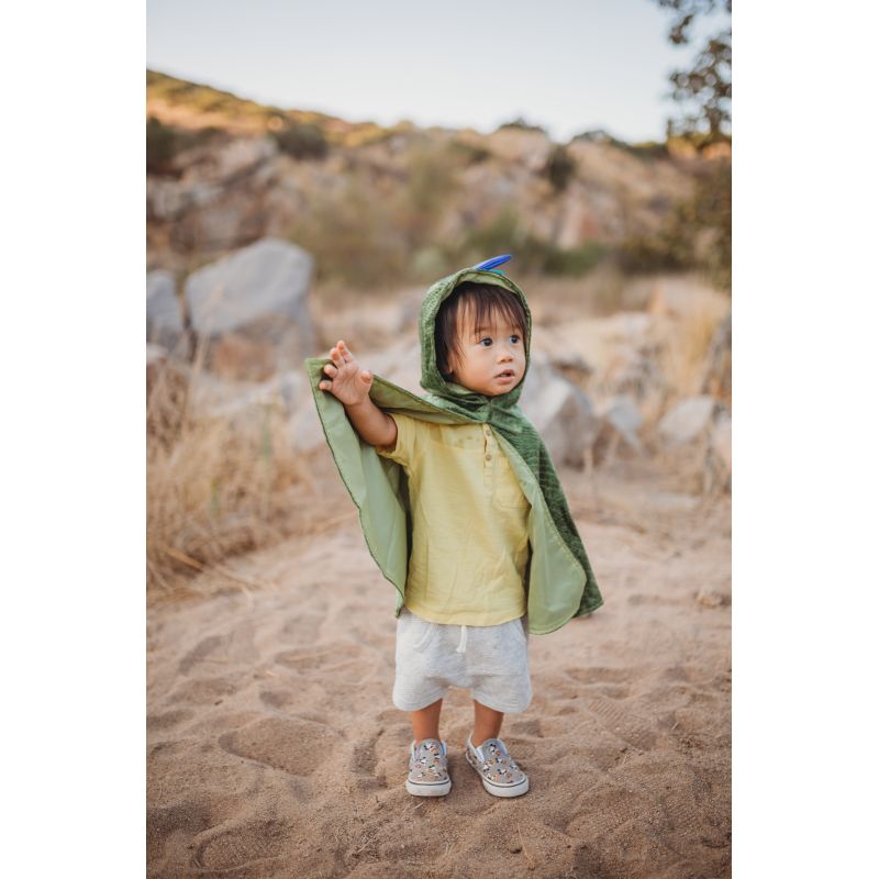 Esta capa de dragón para niños inspirará todo tipo de aventuras. Está confeccionada en suave terciopelo texturizado en varios tonos de verde, con escamas, para un look de dragón perfecto. Las púas forradas de espuma están diseñadas para mantenerse rigidas y añadir un toque fantástico a la capa.