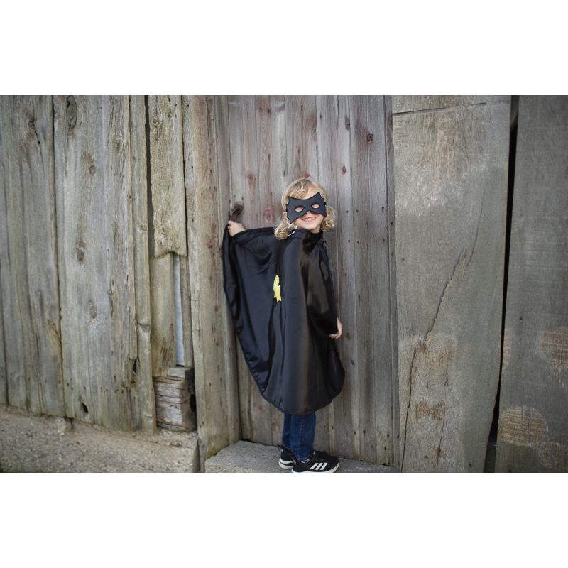 ¡Nuestro diseño ganador de múltiples premios es perfecto para pequeños superhéroes de todo el mundo! Esta adorable capa reversible ofrece el doble de diversión con un diseño de calidad y versatilidad. El lado de satén negro presenta un emblema de murciélago amarillo y se revierte a un estampado de tela de araña roja en el reverso con grandes detalles de araña de espuma de terciopelo negro. El cierre de velcro en el cuello hace que cambiar de superhéroe sea muy fácil.