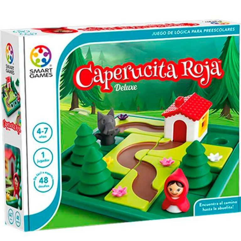 Caperucita Roja es un juego de ingenio perfecto para niños pequeños, ya que consiste en 5 piezas grandes y fáciles de manipular con caminos y flores. Los niños quedan fascinados al poder mover las figura por el tablero.