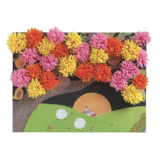 Contenido: 4 tarjetas ilustradas (21 x 28 cm), 168 tubos con un extremo autoadhesivo, que liberan un pompón, y 1 folleto con instrucciones a todo color.