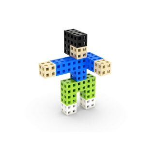Los bloques Meli Cube tienen forma de pequeños cubos (2 cm x 2 cm x 2 cm) hechos de un material suave y seguro para los niños. Cada pieza tiene cuatro clavijas en un lado y cuatro agujeros en los otros lados. Esto hace que los cubos sean fáciles de conectar y desmontar para crear diversos objetos en 3D.