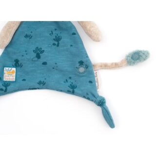 Suave doudou de color azul y gris para acompañar el sueño de tu bebé. También lo puede usar como mordedor.