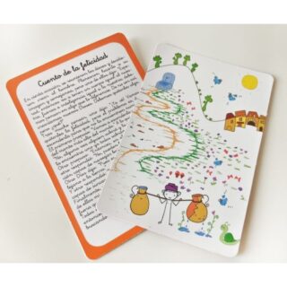Contenido: 27 cartas (20 cartas de posturas de yoga + 4 cartas de respiraciones + 2 cartas de cuentos + 1 carta con las reglas del juego de yoga)
