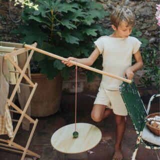 Una tabla de equilibrio y una colección de piezas de madera. Ponte a prueba para encontrar el equilibrio perfecto, hazla girar o experimenta con conceptos de física, ¡todo con tus propias manos!