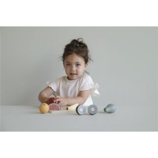 ¡Come fruta todos los días! A tu hijo le encantará copiarte para preparar una variedad de frutas con este lindo juego de madera de 6 frutas diferentes.