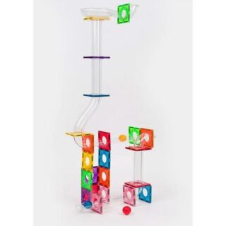 Crea tu propio tobogán y deja que la pelotita ruede sin parar. El juego de bloques de construcción IMANIX Tobogán de 50 piezas es perfecto para ello. Construye un circuito en 2D y 3D con bloques geométricos de diferentes tamaños, colores y curvas.