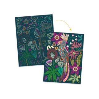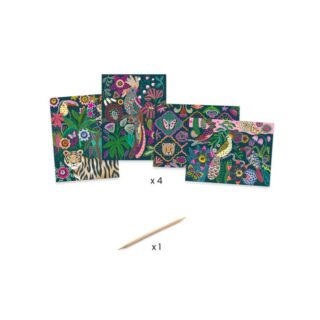 Contenido: 4 tarjetas para rascar (15 x 20 cm), 1 palito de madera de punta doble y 1 cuaderno de explicaciones paso a paso.