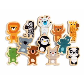 Crea 12 animales de dos piezas cada uno con las 24 piezas de madera imantadas.