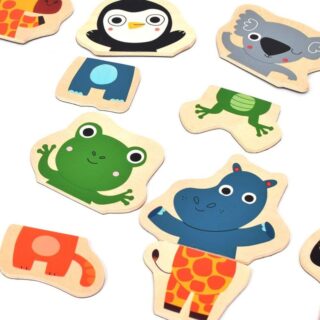 También puedes mezclar las piezas y crear animales fantásticos. Pon la cabeza de una jirafa con el cuerpo de una rana… verás que es de divertido.