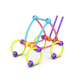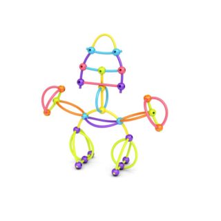 Sus elementos muy sencillos -palitos flexibles y canicas con agujeros- están fabricados en plástico blando y son 100% seguros para sus manos pequeñas y ágiles.