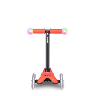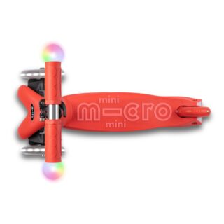 La barra de empuje para los padres puede utilizarse en posición vertical, además de la posición horizontal estándar. Esto significa que sólo se necesita una mano para empujar, protegiendo así la muñeca y los músculos. Además, el Micro Mini2Grow Deluxe Magic LED convence con un manillar ajustable en altura, un mecanismo patentado de inclinación hacia delante y un reposapiés con agarre adicional.