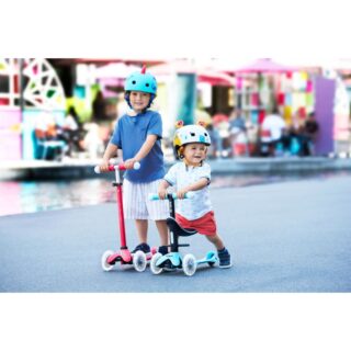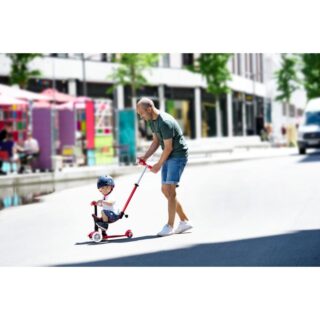 Gracias a su multifuncionalidad, puede utilizarse a partir de los 12 meses y acompañará a su hijo como mínimo hasta los 6 años. Este innovador y ergonómico patinete todo en uno puede utilizarse en diferentes variantes: al principio con asiento, dos opciones de reposapiés y barra de empuje para los padres, más adelante sin barra de empuje, como una mezcla entre bicicleta de equilibrio y patinete y, por último, como un Mini Micro Deluxe clásico con bombillas LED mágicas en el manillar y ruedas lunares LED.