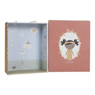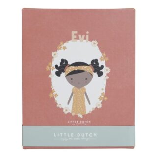 Conoce a la encantadora Evi. Esta muñeca de peluche de Little Dutch con un lindo vestido quiere ser abrazada.