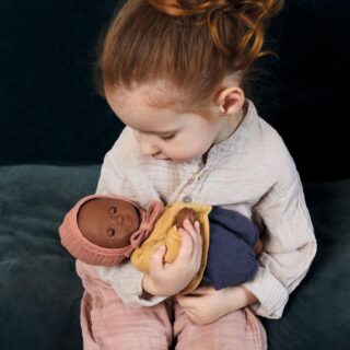 Mimosa baby es una muñeca flexible con un rostro angelical que mide 32cm. No tiene pelo y es simplemente hermosa.