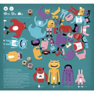 Juego de observación y rapidez para toda la familia. Busca las partes del monstruo que indican los dados y construye tantos como puedas.