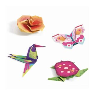 Rumbo al sol del Trópico con este estuche de origami de aires exóticos. Flores, colibrís, tortugas y mariposas realzadas en rosa fluorescente. Siguiendo las explicaciones del cuadernillo y las marcas trazadas, el niño pliega el papel hasta realizar 24 maravillas de papel.