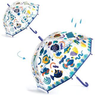 ¡Este precioso paraguas es mágico! En cuanto se moja, los peces cobran vida y se llenan de color.