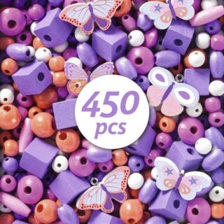 ¡Con estas 450 perlas hechas de madera y los 6 metros de hilo podrás crear collares y pulseras de todos los colores! El tamaño de las piezas y del hilo hace que sea fácil hilar. Estimularemos la motricidad fina e incluso la secuenciación, todo mientras nos lo pasamos bien y disfrutamos creando.