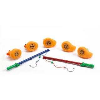 Juego de pesca que incluye 2 cañas de pescar y 5 patos divertidos. ¡Con un poco de habilidad y muchas risas, los pescadores se lo pasarán en grande!