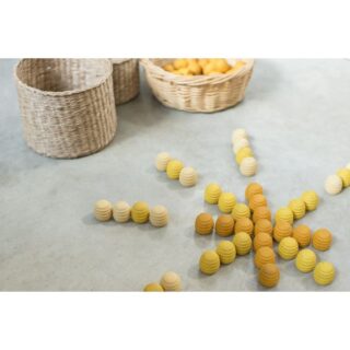Incluye 36 piezas de madera en forma de cono y teñidas en 3 tonos diferentes de amarillo.