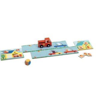 Contenido: 12 fichas de coches/carretera despejada, 1 parque de bomberos, 1 casa, 7 fichas de fuego, 1 camión de bomberos y 1 dado de madera. Reglas del juego en 10 idiomas.