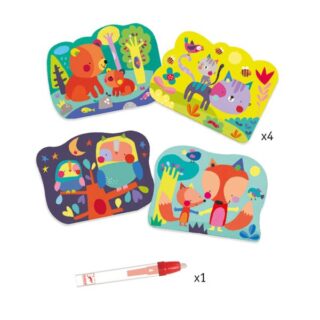 Se llena el bolígrafo de agua. El niño o niña colorea para hacer aparecer las sorpresas.