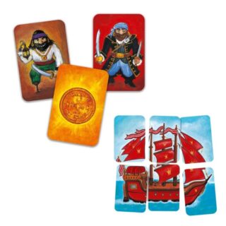 -Cartas piratas: son las únicas que hacen pasar turno. Nos obligan a deshacernos de 3 cartas (ya sean de las acumuladas o si hace falta del propio barco que estamos construyendo).