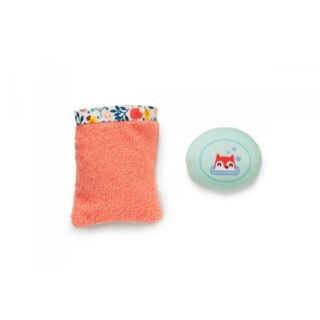 Un bonito set con el que tendrán a mano todo lo necesario para bañar a sus muñecas bebé. Con esponja con forma de manopla, una divertida pastilla de jabón y una toalla con simpáticas orejas de zorro en la capucha. Una vez bañados, podrán envolver a sus bebés para acurrucarlos y secarlos fácilmente.