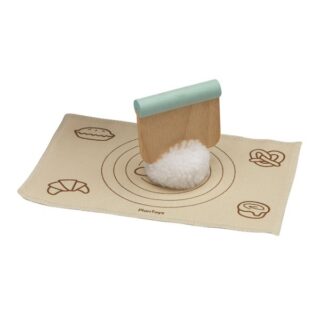 ¡Juega a tener una panadería con el set de panadería! Hecho de PlanWood ™, se puede cortar una realista barra de pan con el cuchillo de pan incluido. ¡Una bandeja para hornear pan, un rodillo, un cuchillo para pan, un guante lavable para horno, una bolsa de harina simulada y una esterilla para amasar pan completan este juego y lo convierten en un gran complemento en juego de cocina! Enseñe a los pequeños cómo usar las herramientas correctamente mientras fomentan el pensamiento imaginativo, el desarrollo de habilidades motoras finas y el uso de la comunicación durante el juego social.