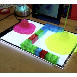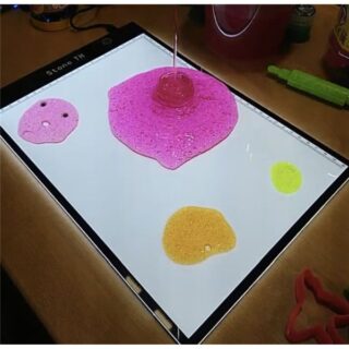 La tableta de luz de LED es ideal para todo tipo de creatividad, desde el juego con materiales translúcidos y superposición de colores hasta como herramienta para el calco o visionado.