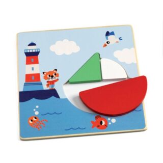 La caja contiene unas tablas de madera ilustradas con bonitos paisajes y el niño o niña tendrá que completarlas colocando las piezas geométricas que faltan.